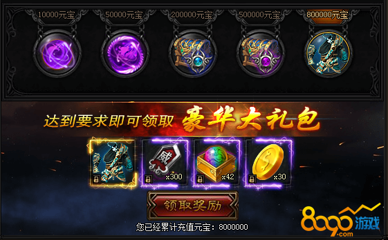 活动期间内,玩家累计充值元宝数额即可领取奖励。