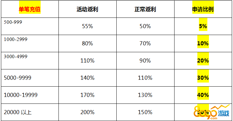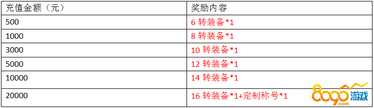 注:只能领取一档奖励(例:玩家充值5000元,只能领取5000元档奖励或者3000元档加1000元档*2)