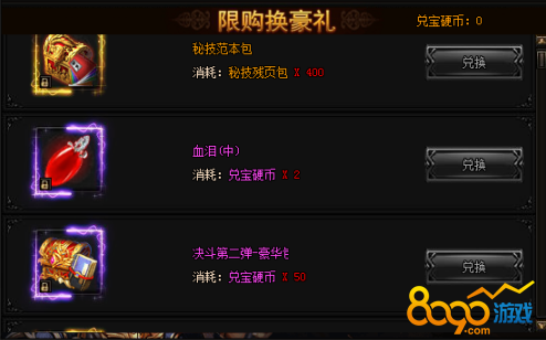 活动期间内,进行幸运探宝有一定概率获得兑换硬币。可以使用兑换硬币兑换下列极品奖励!