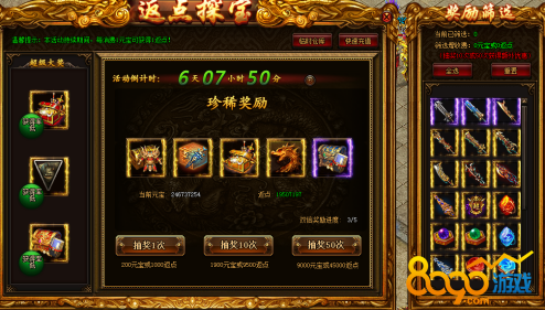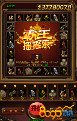 活动期间,玩家可花费元宝下注,随意选择8个图按中一个或者多个,点击开始按钮进行抽奖,抽奖结果与玩家所压图案相同则获得对应的元宝奖励。每轮最低押一注,最高99注,每注需要500元宝,押注越多奖励越高;不同图案有不同倍率,倍率越高返还元宝奖励越高,元宝会以道具形式只发给玩家。(温馨提示:具体细则可查看代币商城上方的问号)!