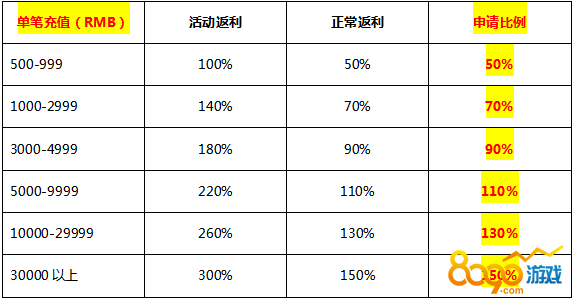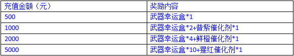 注:只能领取一档奖励(例:玩家充值2000元,只能领取2000元档奖励或者1000元档加500元档*2)