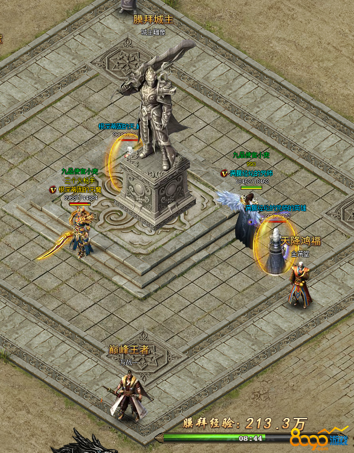 在比奇城安全区内,点击城主雕像进行膜拜即可获得大额经验。