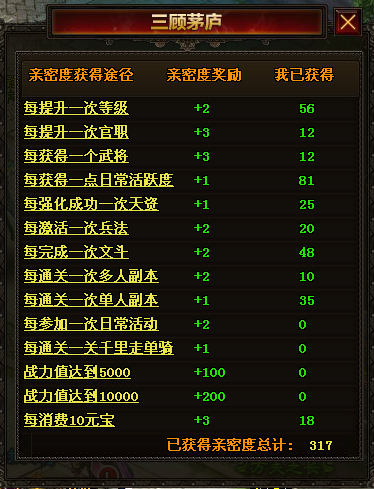 答:新武将的获得可通过酒店射箭来招募、也可以通过副本开箱子获得、还可以通过市场购买。