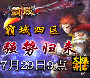 8090《霸域》霸域4服“强势归来”将于7月29日9:00火爆开启,斗智斗勇,玩转三国!为了让广大玩家更好的体验游戏,8090《霸域》特地准备了精彩的开服活动和丰厚的奖励,诚挚邀请广大玩家来到霸域中,一起回到三国,感受至尊霸主的辉煌!
