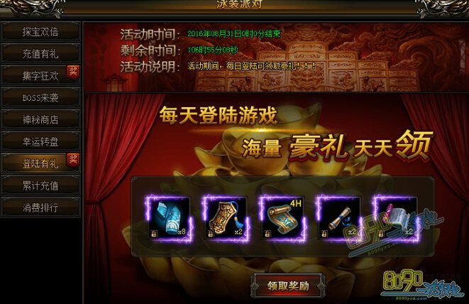 活动时间内,每天登录游戏,即可领取海量豪礼,记得登录哦!