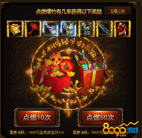 活动期间,累计消费指定元宝数额即可领取大奖!符合条件即可领取坐骑时装贺岁年兽幻化券等奖励。