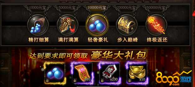 活动期间,累计充值指定元宝数额即可领取大奖!