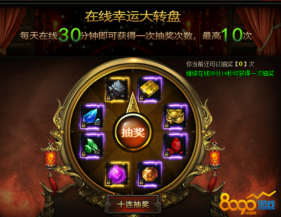 活动期间内,玩家每天在线30分钟可获得一次翻盘机会,每天最高获得10次机会。