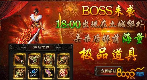 活动期间,BOSS将于每天18:00降临盟重土城,击杀有机会获得百战之心、高转装备等极品道具。