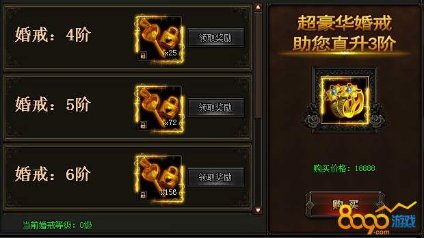 活动期间,婚戒达到指定要求即可领取大奖,每项奖励每人仅限领取一次。