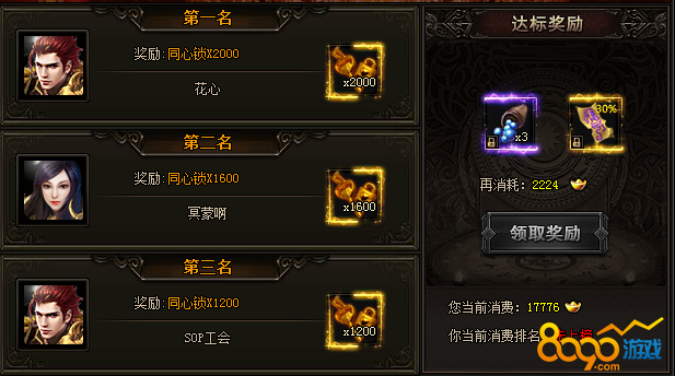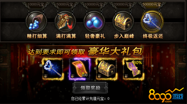 活动期间,累计消费元宝将领取大奖!达成消费元宝条件(至少300000元宝)可获取豪礼!