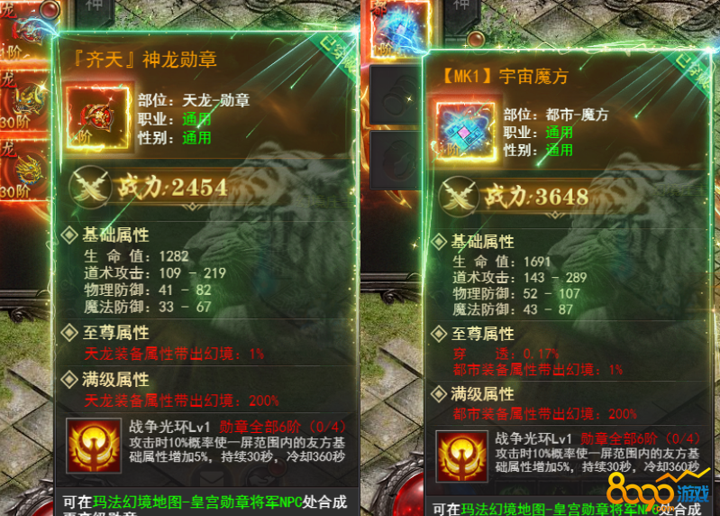 3、 条件:集齐赤月、战神、天龙、都市4种1阶玛法勋章即可激活。