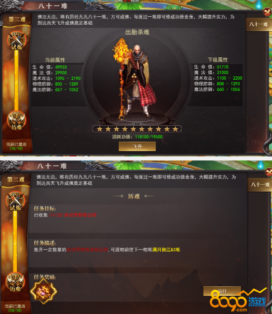 2:达到10星之后需要消费对应的劫难证明,完成之后可获取法器碎片奖励
