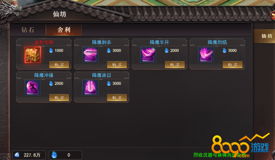 2、仙坊使用舍利进行换取,舍利击杀怪物回收装备大量获取