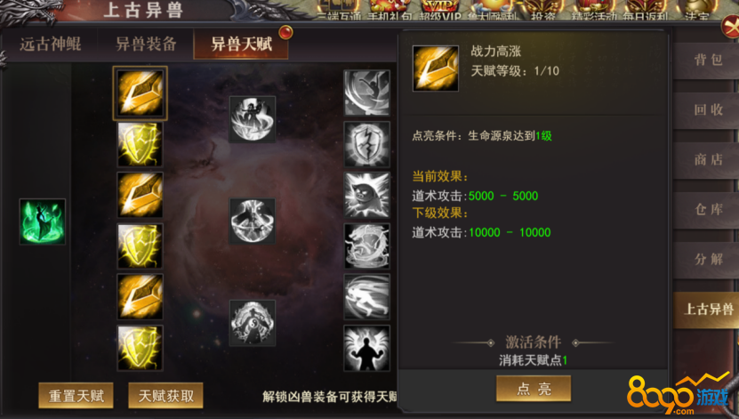 (3).天赋点获取:每收集一件异兽装备可获得天赋点*1