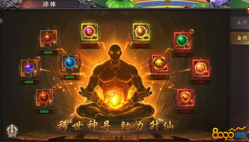 1.炼丹属性:炼丹需要时间,投入材料即可开启炼制,丹药使用获得大量属性