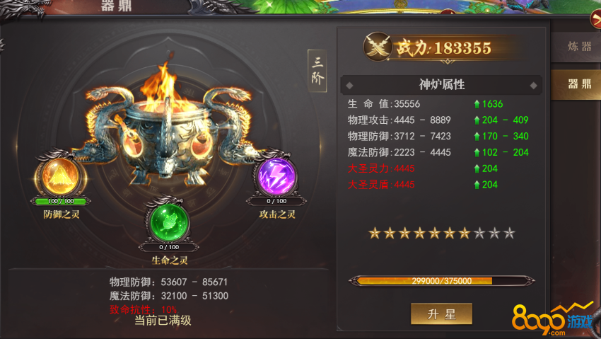 (3)升星效果: 增加基础属性;星级属性: 增加百分比自身装备属性