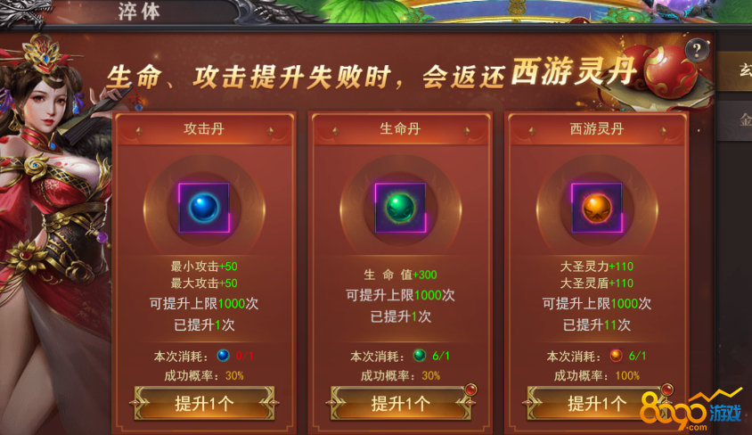 (1)低级丹药使用有成功概率,失败后必定获得西游属性丹药