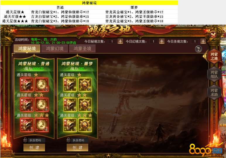 4.副本奖励:青龙白银秘宝/青龙黄金秘宝/鸿蒙仙级勋章/鸿蒙圣级勋章