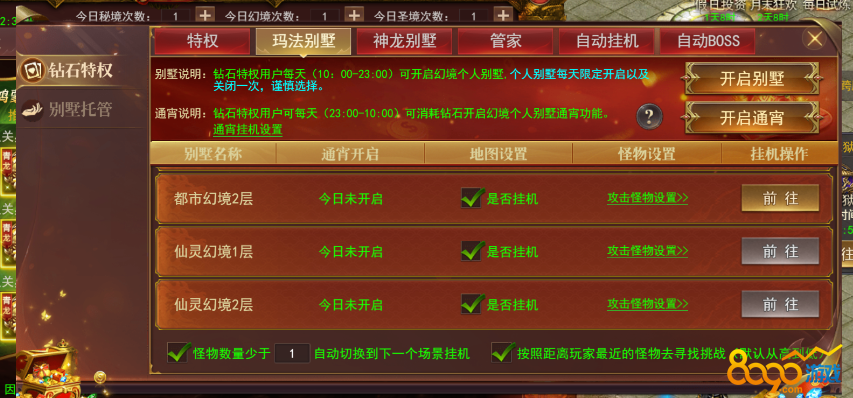通宵说明:(每日23:00-10:00)可消耗钻石开启幻境个人别墅通宵功能