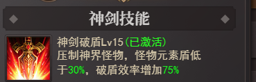 4.神剑技能:神剑达到1阶,可以激活神剑进阶技能,每次升阶,技能可以得到提升