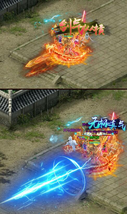 战士“剑气纵横”主动释放后,挥出剑气对前方造成伤害,并且将目标推向两边,生成一道除自身外其他玩家无法通行的剑气,持续5秒,冷却120秒