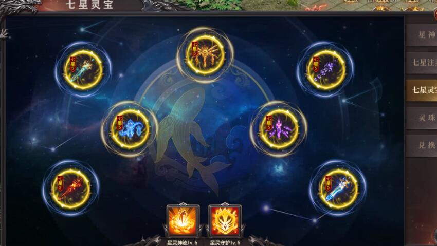 每个星位对应一个灵宝,集齐所有灵宝即可获得套装属性和共鸣技能