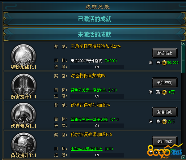 成长成就记录玩家每时每刻的成长,和玩家挑战自我极限的成果战士