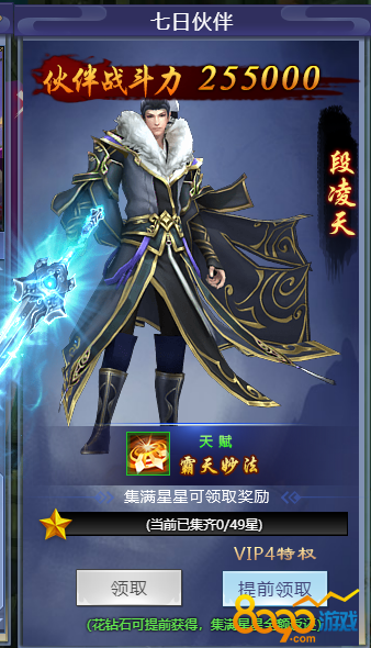 开服活动七天收集齐49颗星星即可召唤强力伙伴:段凌天,自带天赋霸天妙法永久增加玩家200攻击力(VIP4特权可以提前领取)