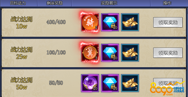 活动说明:活动期间,角色总战力达到指定数值即可领取丰厚奖励。