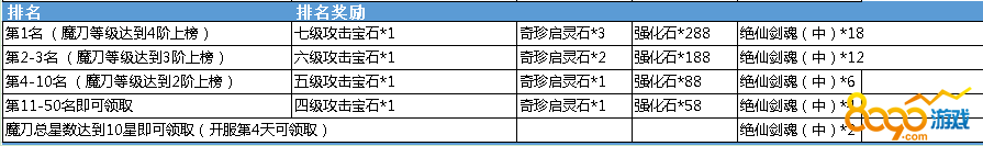活动说明:活动说明:活动期间,魔刀战力按获得的先后顺序进行排名