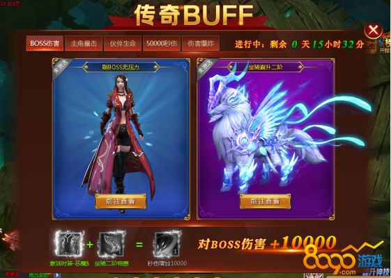 活动说明:购买相应的礼包即可激活强力传奇BUFF