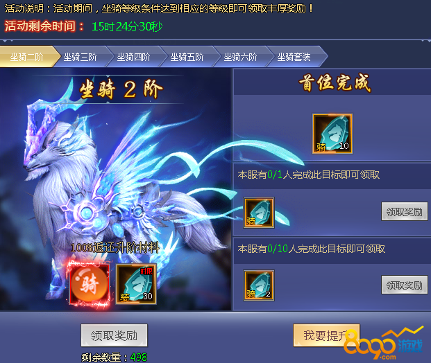 活动说明:坐骑达到指定星数的玩家可领取对应奖励,数量有限先到先得!