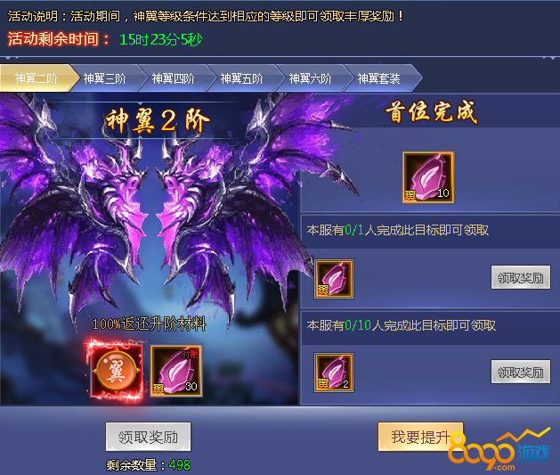 活动说明:神翼升至指定等级,即可领取海量珍稀道具!