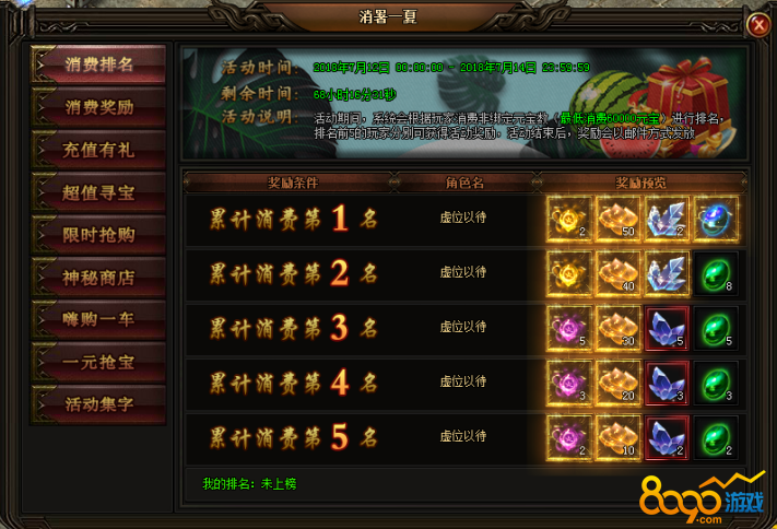 1.7月12日至7月14日,累计消费前5名可获得活动奖励,活动结束,奖励以邮件方式发放