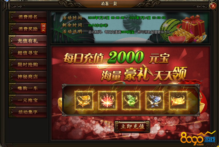 3. 7月12日至7月14日,每日充值2000元宝,即可领取超值豪华大礼