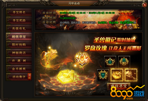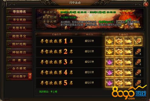 1.11月12日至11月14日,累计寻宝前5名的玩家可获得活动奖励,活动结束,奖励以邮件方式发放