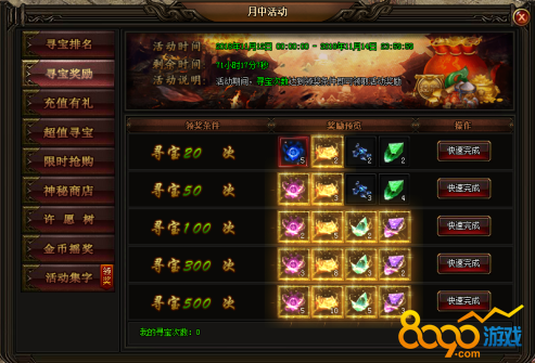 2. 11月12日至11月14日,寻宝达到一定次数可获得活动奖励(活动期间,每种奖励仅限领1次)