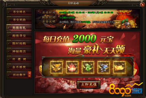 3. 11月12日至11月14日,每日充值2000元宝,即可领取超值豪华大礼