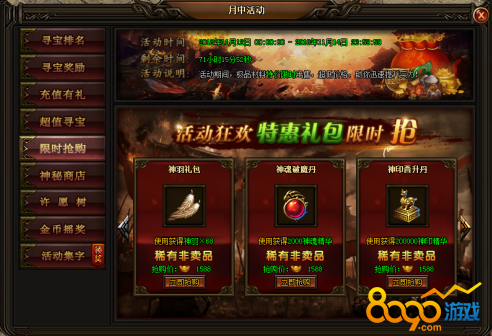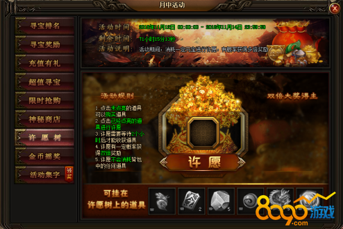 7.11月12日至11月14日,消耗一定的元宝进行许愿,有概率获得多倍奖励