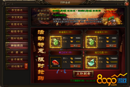 6. 11月12日至11月14日,神秘商店促销稀有材料!商店物品每2小时或商品全部购买后自动刷新,也可消耗一定元宝手动刷新!