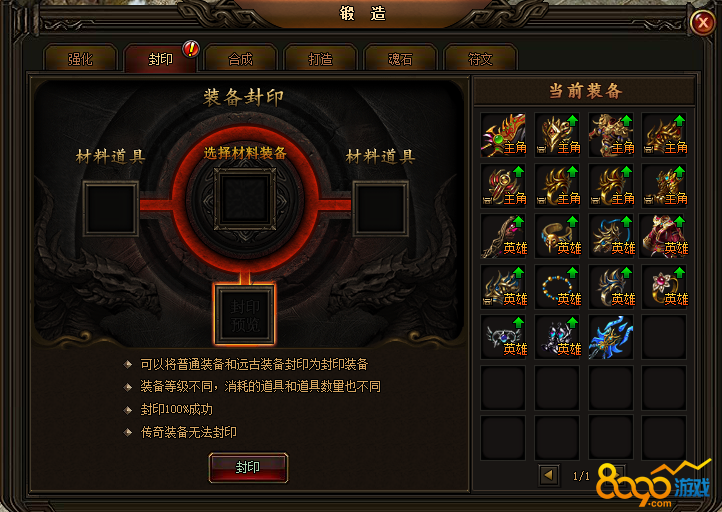 2.装备等级不同,消耗的封印神石也不同。封印神石通过超值特惠、寻宝获取。
