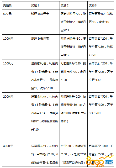 玩家充值到相应额度可在奖励中选择一种