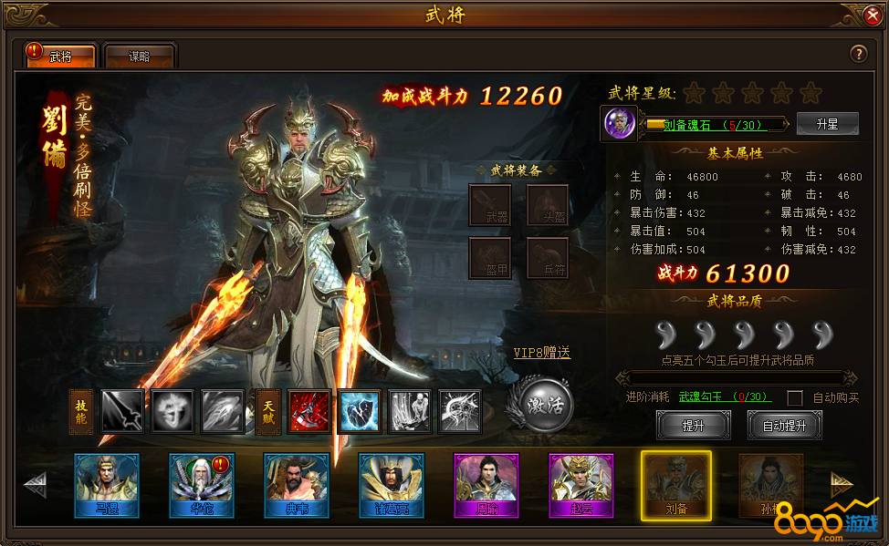 刘备是玩家达到VIP8才能领取的武将,获取难度也是很高的,但是他对于玩家的回报也是很多的,想要加快打怪速度的玩家可以多考虑一下。