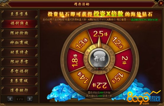活动内容:活动期间,充值可获得转盘次数!消费的钻石不计入消费排行!每日重置。