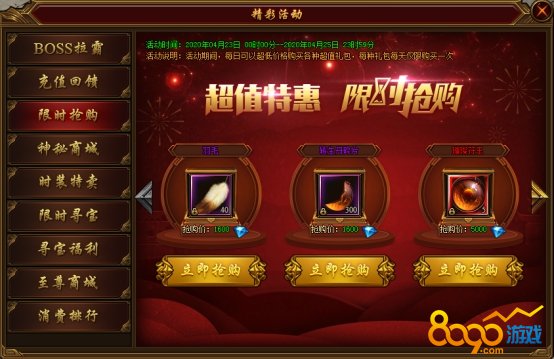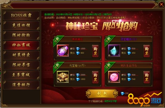 活动内容:活动期间,神秘商城每2小时自动刷新,限时打折出售各种稀有道具!