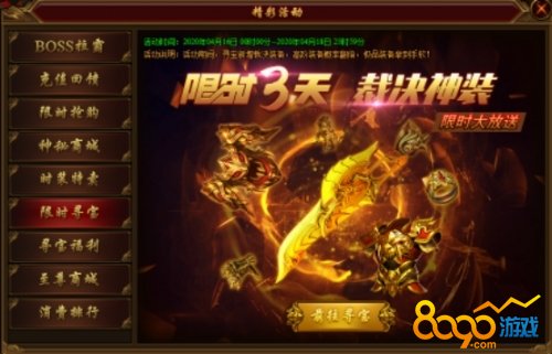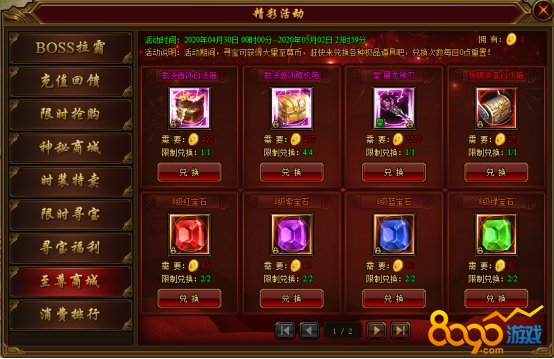 活动内容:活动期间,寻宝可获得大量至尊币,使用至尊币可在至尊商城兑换海量极品道具。