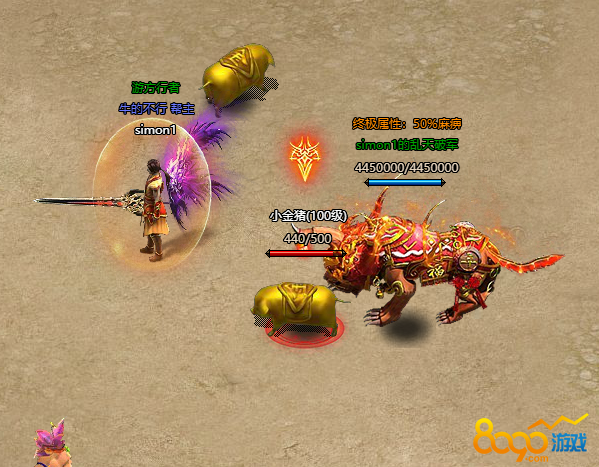 玩家可到主城116,79附近,通过攻击小金猪每次造成1点伤害,小金猪和小花猪可掉落大量元宝和押运令,玩家都可拾取,所有的小金猪怪和小花猪怪被击杀之后,会出现大金猪BOSS。