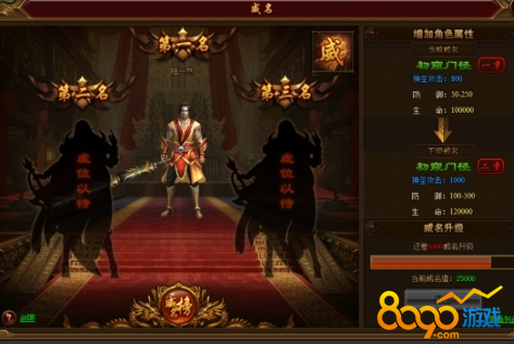 威名作用:威名值高的玩家可对威名值低于自己的玩家造成额外的伤害加成。威名榜排名前三的玩家造成的额外伤害将会大幅增加