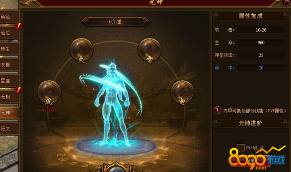好了,关于元神系统就介绍到这里了,元神能够给人物带来非常不错的属性加成,还有抵消伤害的效果,大家多多加油升级吧!